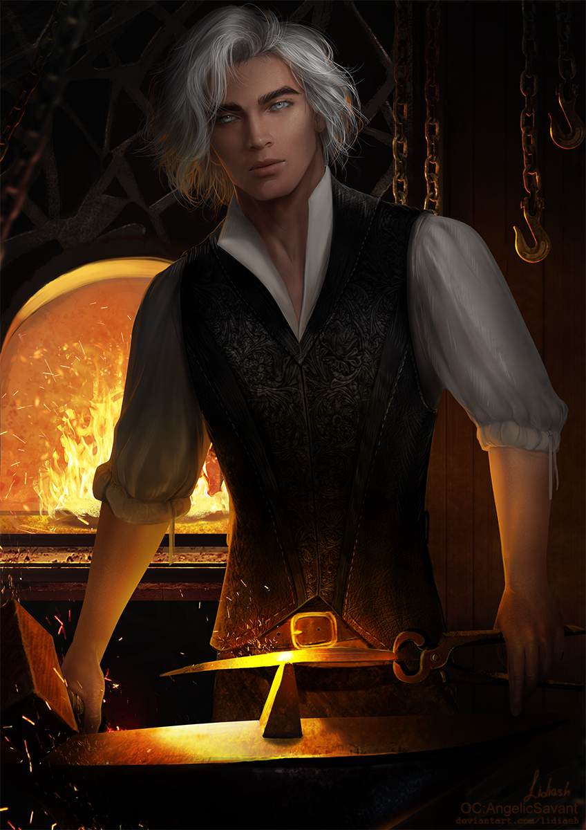 Aussehen: Der junge Mann hat weiße Haare und hell blaue Augen sie sind fast schon weiß. Dadurch wirkt Michael sehr attraktiv. Er hat kräftige Arme und leider Gottes, keine weichen Hände, sie sind rau vom Schmieden von Waffen oder Schmuck. Er ist sehr stark, dies sieht man bloß oft nicht. Das Kontrast bildet seine Hautfarbe, durch die leicht gebräunte Haut und seinen natürlich weißen Haar. Seine Ärmel sind oft hoch gekrämpelt damit er sich nicht verletzt.